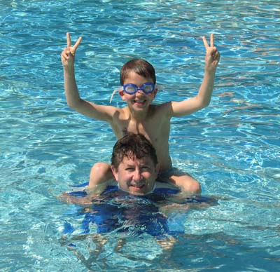 David plays 'cling-on' on Dad's shoulders.