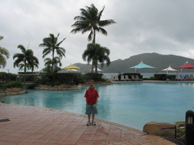 David in front of one of the pools on the day we left. The only day that it
