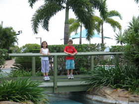 One of the bridges over the pool